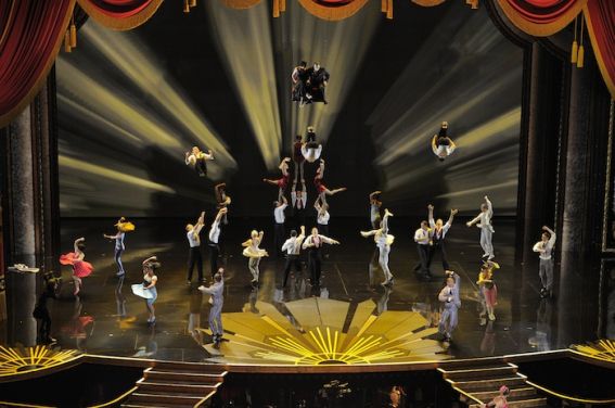 Kermitt (La rana René) y Miss Piggy tienen una participación en la ceremonia presentando el número del Cirque Du Solei